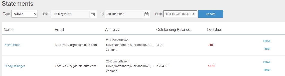 After clicking the send statements button you can use the filters at the top of the page to refine what is displayed