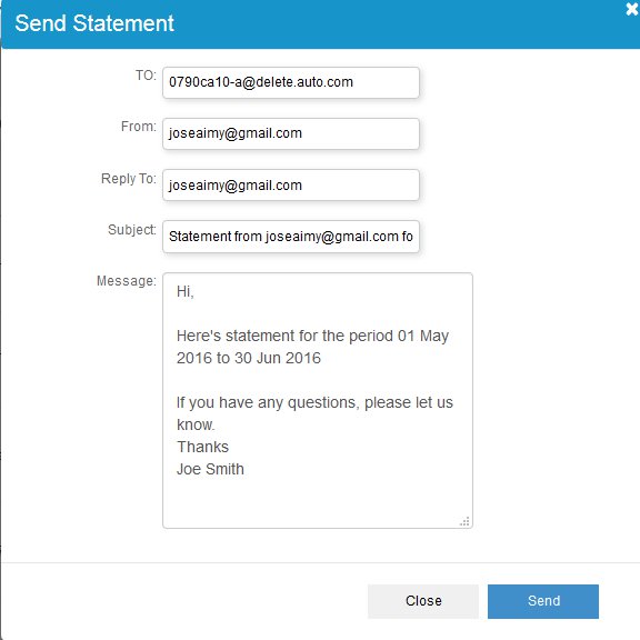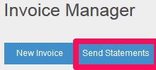 Statements can be sent to parents by using the send statements button. Options include sending a statement about all activities invoices and payments or just outstanding invoices